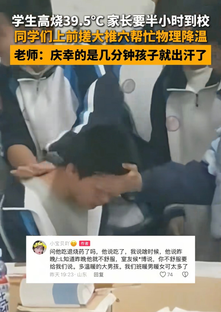 老师站在讲台上,看着这一幕。讲了十几年课,见过学生打闹,见过偷偷传纸条,却没见过这样的场面。几个半大的孩子,用最笨拙的办法,守着一个生病的同学。那双手搓红的手心,那杯晾到温吞的水,那件带着体温的外套,比任何课本都要鲜活。